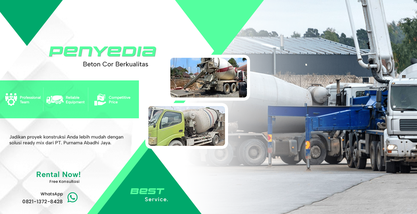 Percayakan kebutuhan beton proyek Anda kepada kami yang menyediakan sewa beton kuat, berkualitas, dan siap kirim tepat waktu ke lokasi Anda.